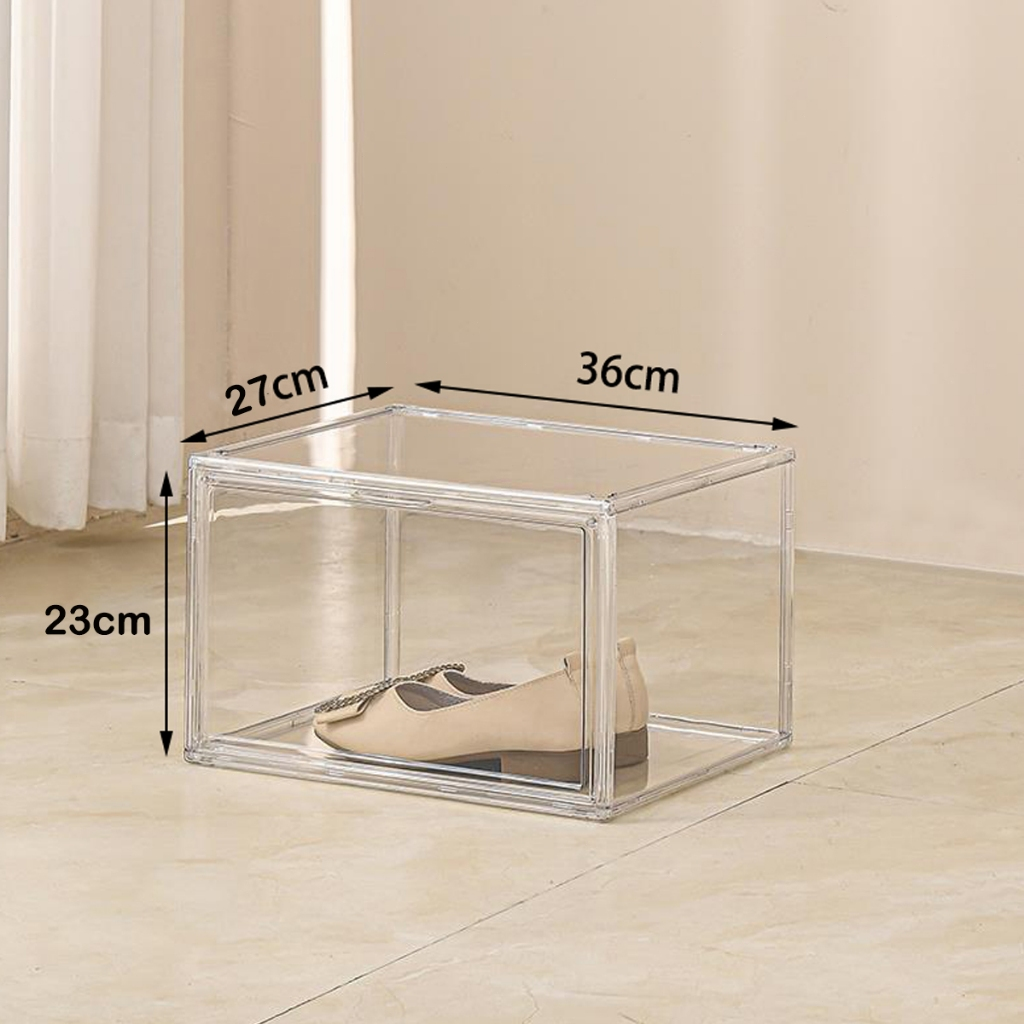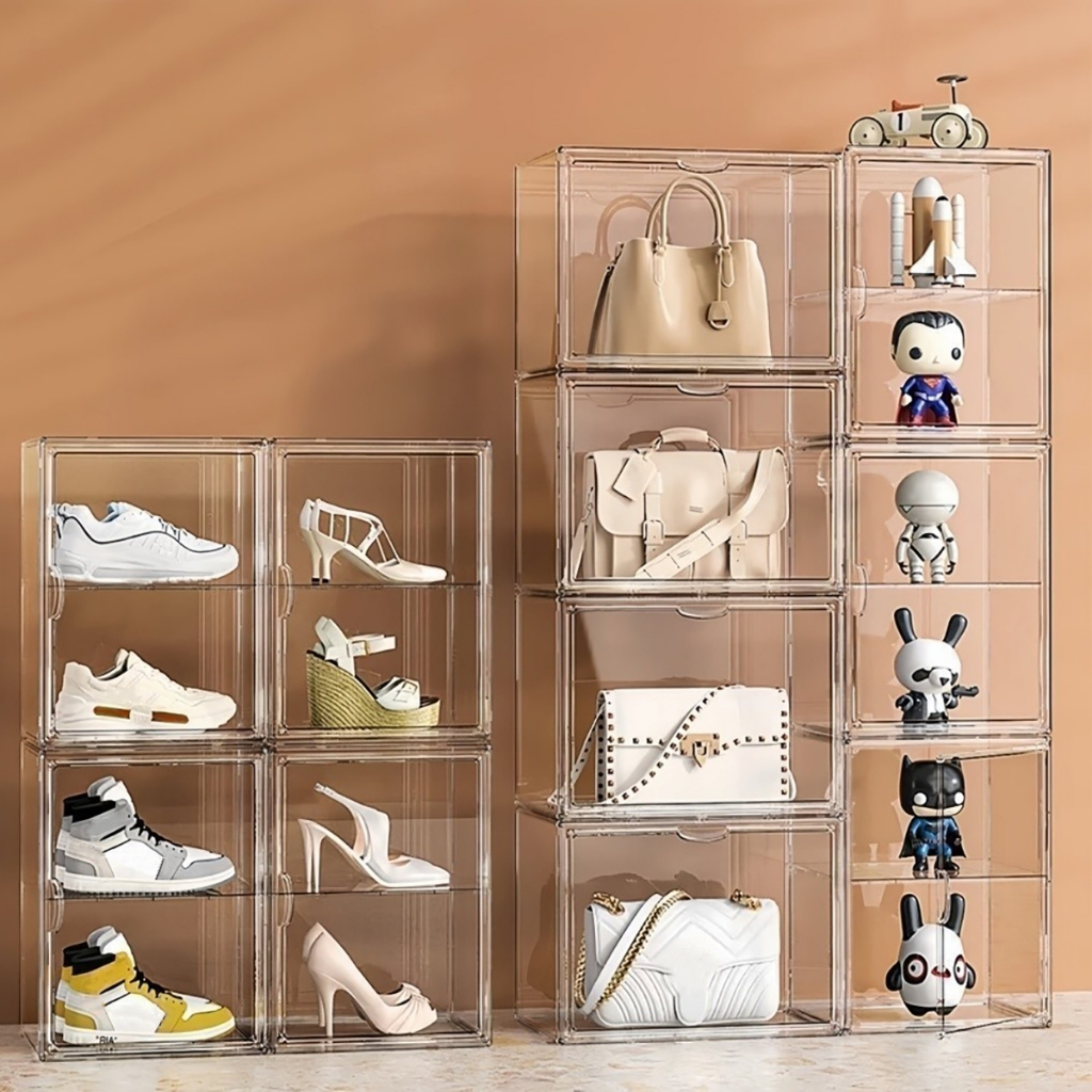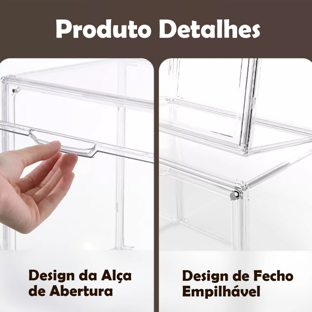 Sim. A caixa organizadora acrílica transparente permite visualizar facilmente sapatos, tênis ou bolsas armazenados.